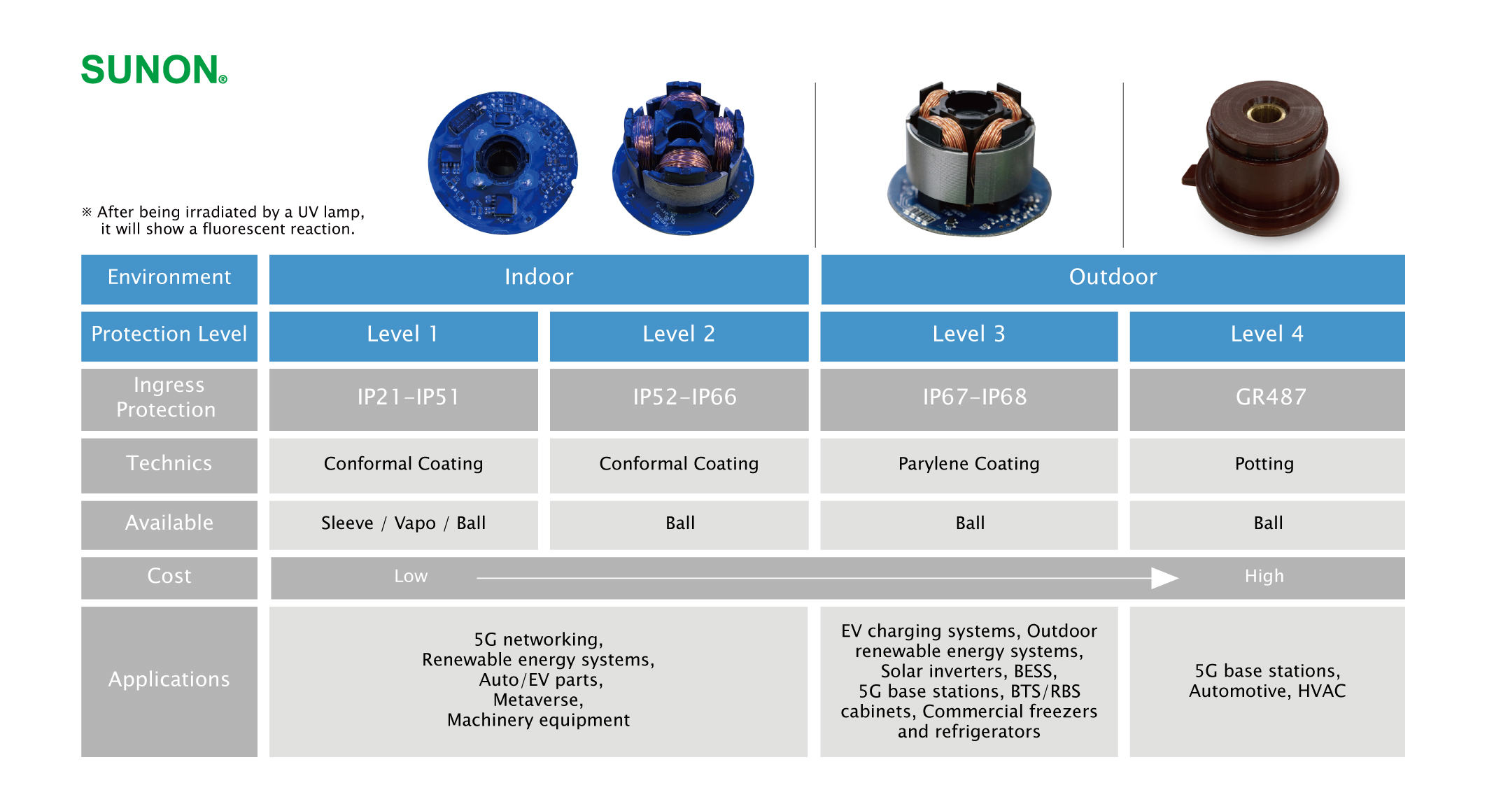 SUNON IP防護(hù)風(fēng)扇依室內(nèi)戶外應(yīng)用環(huán)境的需求推出標(biāo)準(zhǔn)Level 1-4的保護(hù)等級設(shè)計(jì)服務(wù),采用先進(jìn)IP技術(shù)和高質(zhì)量防護(hù)材料,為各式應(yīng)用系統(tǒng)規(guī)劃優(yōu)化IP風(fēng)扇防護(hù)組合,且符合國際測試標(biāo)準(zhǔn)(防水防塵IEC60525 / 防鹽霧ASTM B117),嚴(yán)格把關(guān)高質(zhì)量的產(chǎn)品防護(hù)設(shè)計(jì),確保SUNON IP風(fēng)扇系列具備最佳的防水防塵耐鹽霧性,除了能應(yīng)用在戶外應(yīng)用產(chǎn)業(yè)上,也能被應(yīng)用在其他需要面對嚴(yán)苛環(huán)境挑戰(zhàn)下,和全天候不間斷的長時(shí)間運(yùn)作需求的設(shè)備系統(tǒng),目前已成功應(yīng)用在多類的產(chǎn)業(yè),提供高效散熱和長效使用壽命。