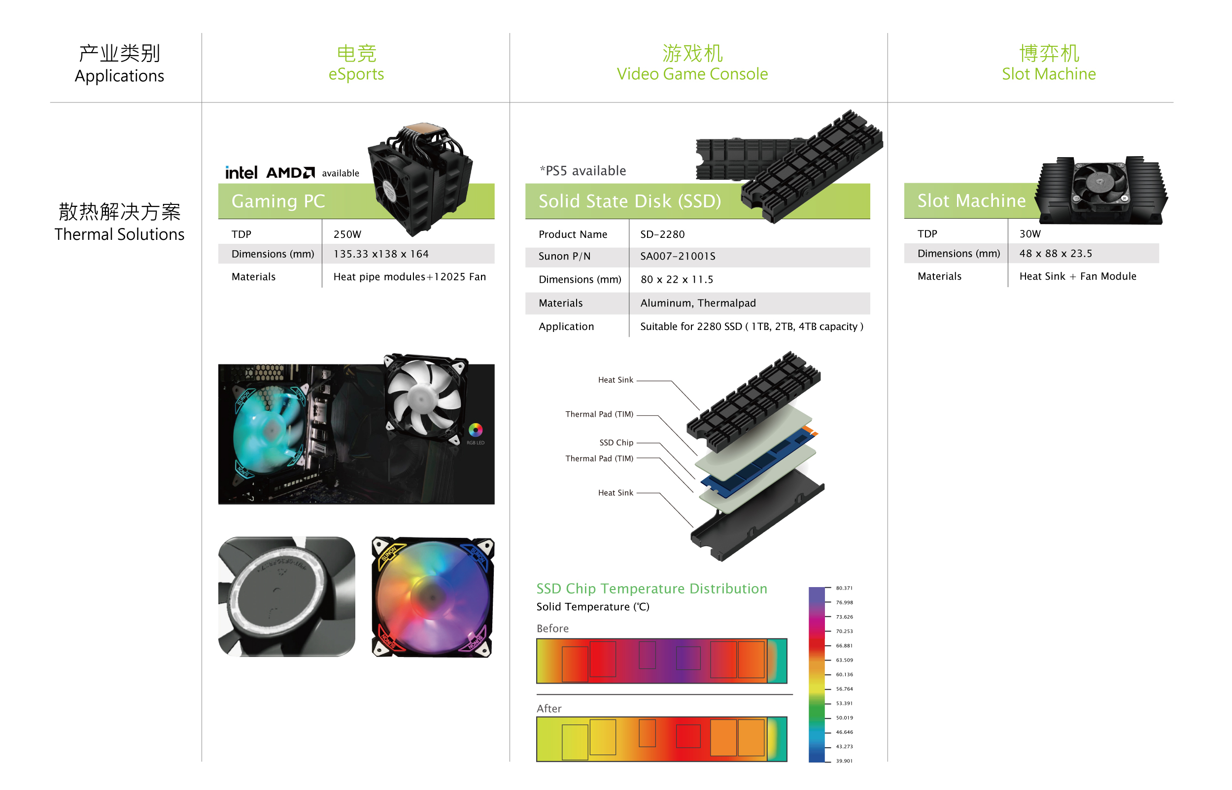游戲機為宅在家的生活帶來無限樂趣,使用者為了儲存更多的高畫質游戲內容,可加裝SSD擴充游戲內容。游戲機SSD讀取效率會影響游戲的流暢度,因此SSD高速讀取存儲過程產生的高溫需要有效的散熱設計,才不會發生過度使用后硬盤過熱,引發游戲延遲、畫面讀取不順或游戲存檔失誤,大敗玩家玩興的悲劇,SUNON 游戲機SSD散熱解決方案能讓游戲數據讀取儲存過程系統溫度受到良好的控制,讓SSD效能最大降低延遲發生率,讓玩家能無憂無慮盡情地暢玩。